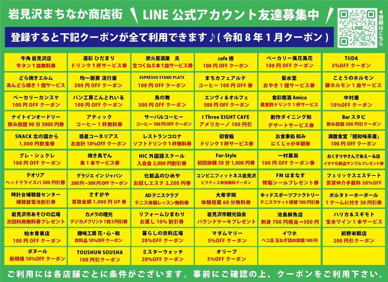 2026年1月1日(木)~2026年1月31日(土)期間中に商店街で利用できるお得なクーポンがご利用可能♪下記一覧からお好きなクーポンを選択頂き、ご利用下さい。各店舗利用条件がございますので、詳細はクーポンをご確認下さい。
